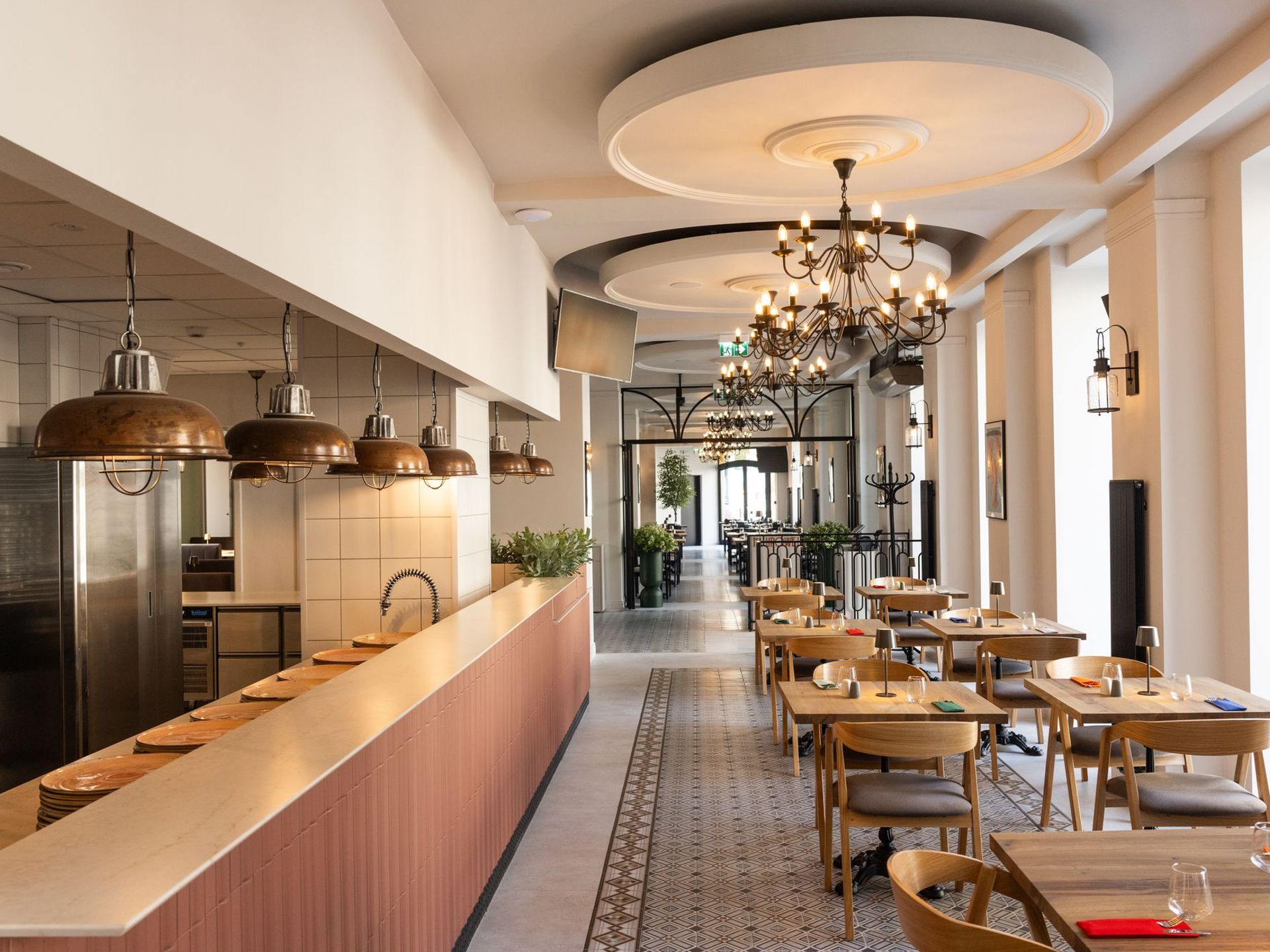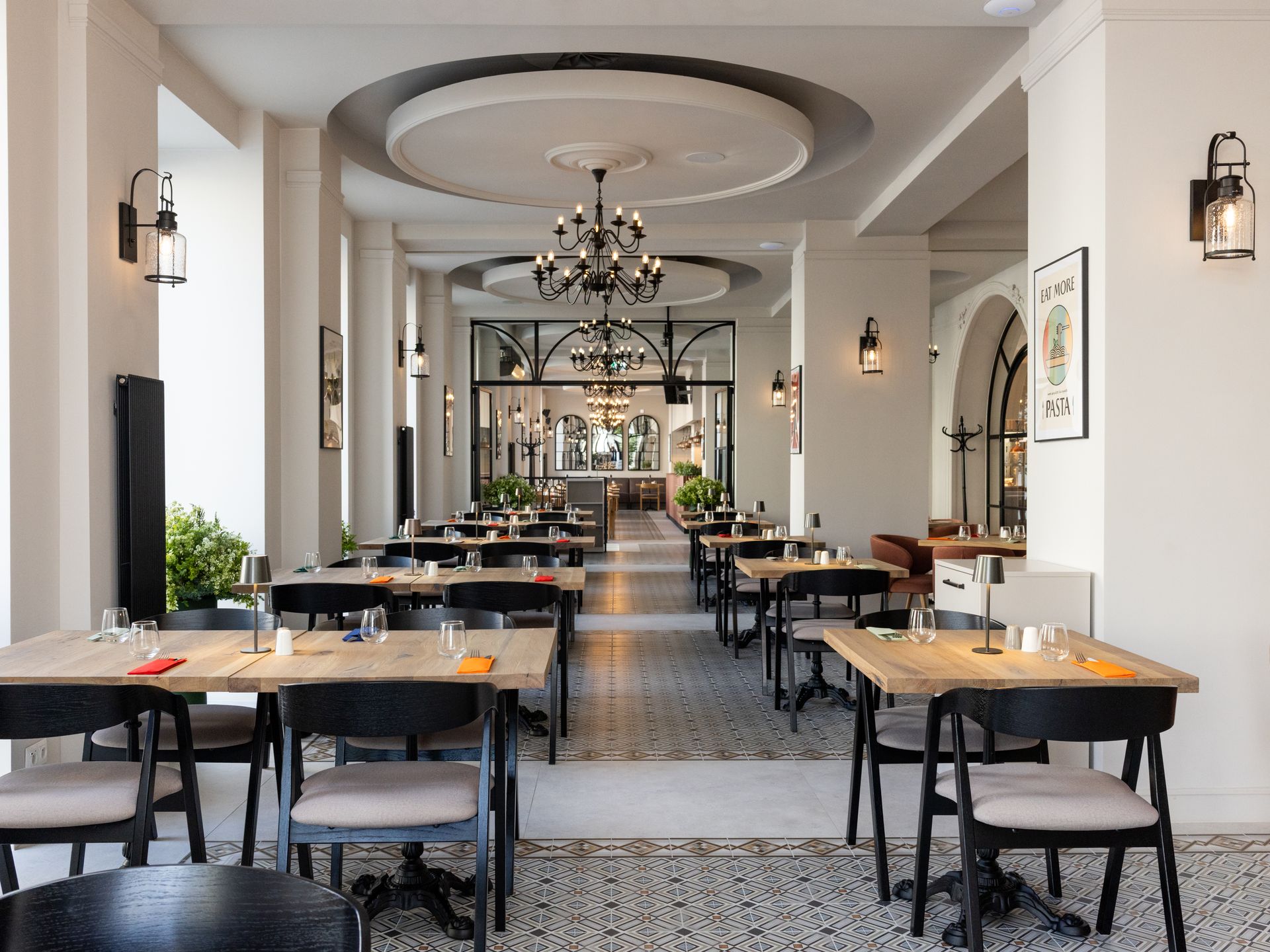 Na Lipowej to miejsce, które daje komfort i poczucie przestrzeni. Przemyślany podział na strefy pozwala na kameralne spotkania i duże rezerwacje. Centralnym elementem jest otwarta kuchnia, która w naturalny sposób łączy gości z rytmem pracy zespołu. Zapachy, dźwięki i widok gotowania budują autentyczność i podkreślają rzemieślniczy charakter restauracji. Ciepłe materiały i układ wnętrza tworzą przyjazną atmosferę. Latem otwierane okna wpuszczają dużo światła i powietrza, nadając przestrzeni lekkości i miejskiego luzu. To lokalizacja w centrum miasta, która sprzyja spotkaniom – od rodzinnych obiadów, przez kolacje z przyjaciółmi, po spokojne spotkania przy stole.